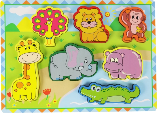 Holz 3D Puzzle mit Safari-Tiermotiven ist ideal zur Entwicklung der motorischen Fähigkeiten von Kindern durch das unterhaltsame Einfügen von Formen.