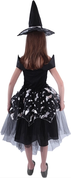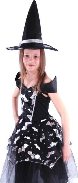 Dieses zauberhafte Hexenkostüm ist die ideale Wahl für jede kleine Dame, die sich in eine stilvolle Hexe verwandeln möchte! Das Kostüm beinhaltet ein schwarzes Kleid mit Fledermausmotiven, silbernen Akzenten und einem fluffigen Rock, der dem Kleid die richtige Portion Eleganz und Geheimnis verleiht.