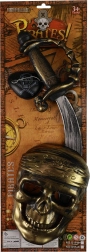 Komplettes Piraten-Set mit Maske, Augenklappe und Schwert in einem einheitlichen Design für eine schnelle und effektvolle Verwandlung bei jedem Anlass.