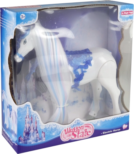 Wir präsentieren das elektrische Pferd aus der Winterkönigreich-Kollektion, der perfekte Begleiter für kleine Fans von Märchen und Fantasie. Dieses magische Pferd bietet folgende Funktionen: