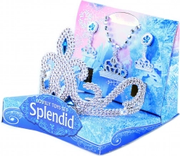 Bereiten Sie Ihrer kleinen Prinzessin Freude mit diesem zauberhaften Set, das eine Krone, Ohrringe, eine Halskette und einen Ring mit blauen Zierelementen enthält.