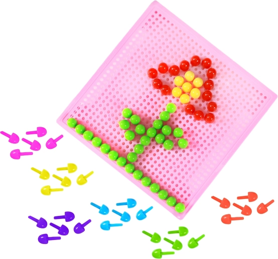 Die Mosaik ist ideal für zu Hause und für Kindergärten – die stabile Einlegeplatte hält die Pilzstecker an Ort und Stelle, und die verschiedenen Farben laden zum spielerischen Lernen von Farben und Formen ein. Ein toller Tipp als Geschenk für Vorschulkinder.