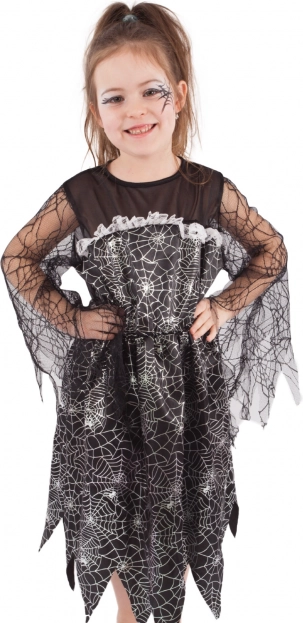 Verwandeln Sie die kleine Hexe in den Star des Abends. Das elegante schwarze Kleid mit silbernem Spinnennetzdruck, transparenten Netzärmeln und einem dramatischen, zackigen Saum sorgt für einen perfekt schaurigen, aber dennoch niedlichen Look an Halloween, auf dem Karneval und bei Mottopartys.