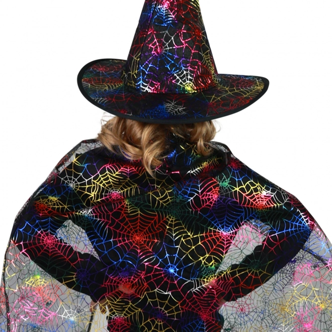 Metallische, mehrfarbige Spinnennetze auf Umhang und Hut sorgen für einen auffälligen Look bei jedem Event.