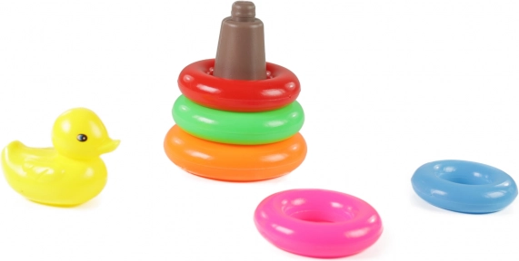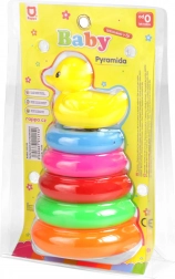 Die bunte Kinderpyramide mit Ente ist so gestaltet, dass sie stundenlangen Spielspaß bietet und gleichzeitig wichtige Fähigkeiten entwickelt. Dieses Spielzeug ist für Kinder ab 12 Monaten geeignet und ein hervorragendes Hilfsmittel zur Förderung der Handkoordination und der Farberkennung.