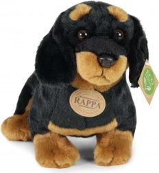 Dieser sitzende Plüsch-Dackel erobert die Herzen von Kindern und Erwachsenen. Der weiche, angenehme Plüsch in Kombination mit originalgetreuen Farbdetails wirkt realistisch und lädt zum Kuscheln und fantasievollen Spiel ein. Die Füllung aus recycelten PET-Flaschen ist vollständig zertifiziert und haptisch nicht von Standardfüllungen zu unterscheiden.