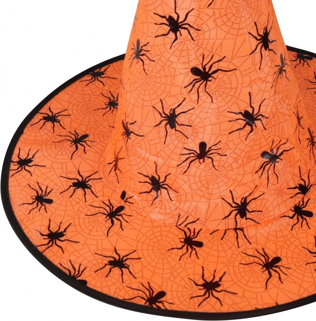 Oranger Hintergrund mit schwarzen Spinnennetzen und Spinnen fällt sofort ins Auge und verleiht Ihrem Kostüm einen authentischen Hexen-Look.