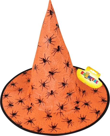 Betreten Sie die Welt der Magie mit einem auffälligen Hexenhut in sattem Orange. Die konische Form, die breite Krempe und kontrastierende schwarze Details mit Spinnennetz- und Spinnenmotiven verleihen Ihrem Kostüm den richtigen schaurigen Touch.