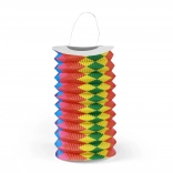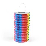 Der Regenbogen-Lampion bringt fröhliche Farben und eine spielerische Stimmung zu jedem Anlass. Er besticht durch markante Streifen in Rot-, Gelb-, Grün- und Blautönen, die bei Tageslicht und abends mit Beleuchtung besonders schön zur Geltung kommen. Ein perfektes Accessoire für Laternenumzüge, Geburtstagsfeiern und saisonale Dekorationen.