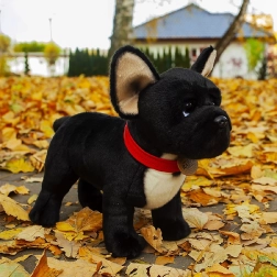 Originalgetreues Aussehen der Französischen Bulldogge mit ausdrucksvollen Augen, rotem Halsband und natürlicher Haltung begeistert jeden kleinen Tierfreund.