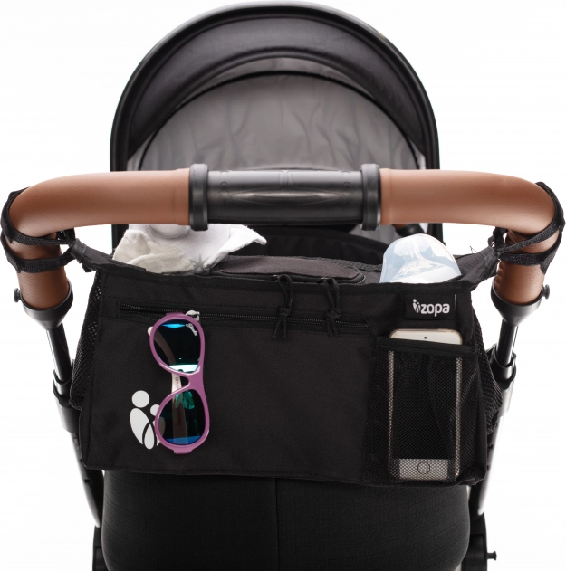 Der praktische und übersichtliche Organizer für den Kinderwagen ist ideal für Spaziergänge mit dem Baby. Der vordere Teil des Organizers enthält eine große Reißverschlusstasche für Kleinigkeiten, die die Mutter während des Spaziergangs benötigen könnte. Die Vorderseite ist außerdem mit einer Netztasche für das Mobiltelefon ausgestattet, sodass die Mutter stets den Überblick behält, wenn etwas mit dem Telefon passiert – trotz lautlosem Modus. So wird das Baby nicht geweckt. In der mittleren Sektion befindet sich eine große Reißverschlusstasche zur Aufbewahrung der benötigten Dinge. An den Seiten hat er zwei Getränkehalter.