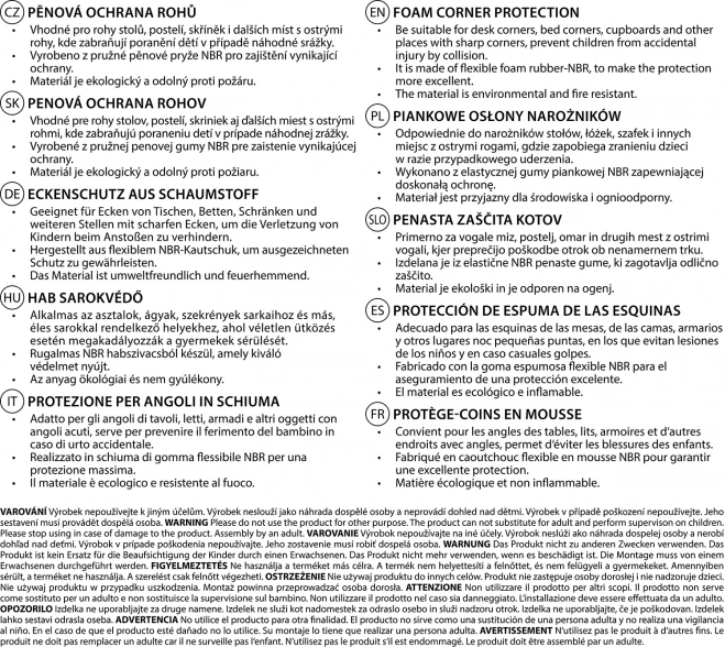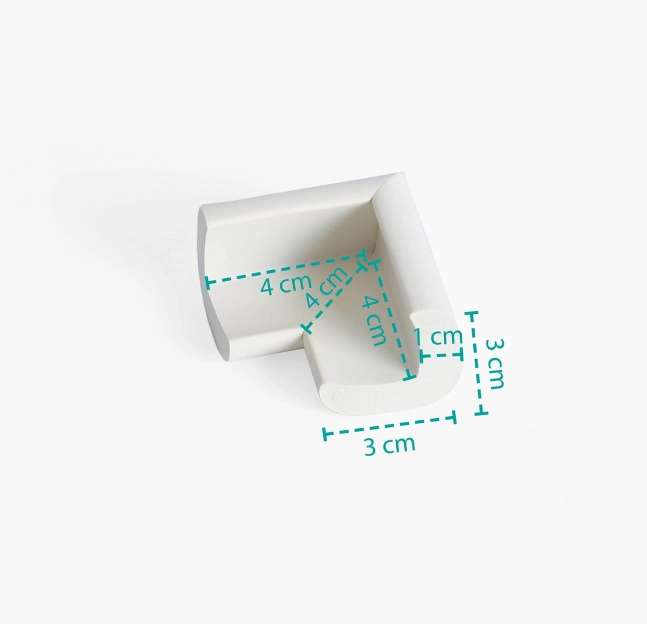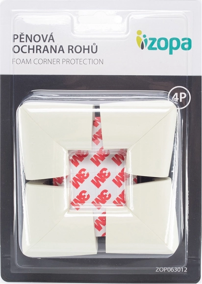 ZOPA Eckenschutzpaket für die Sicherheit von Kindern zu Hause. Enthält 4 flexible Schaumstoffkomponenten in Off-White Farbe, einfach zu montieren mit 3M-Klebeband. Umweltfreundlich und nicht brennbar.