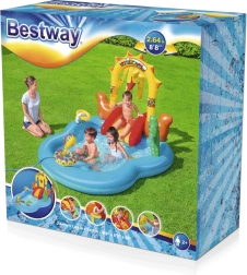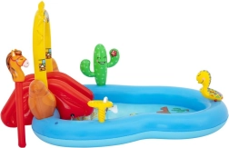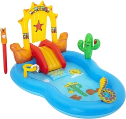 Genießen Sie den Sommer in vollen Zügen mit dem thematischen Wasserspielcenter Bestway Wild West. Farbenfrohes Design, sichere Konstruktion und durchdachte Extras garantieren stundenlange aktive Unterhaltung im Freien. Der integrierte Sprinkler wird direkt an den Gartenschlauch angeschlossen und für bequemes Rutschen sorgt ein aufblasbares Kissen im Boden.