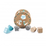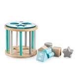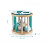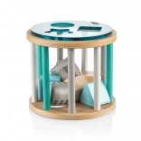 Das Holzspielzeug zum Einsetzen bietet Kindern eine interaktive Möglichkeit, Formen und Farben zu erkennen. Das Spielzeug ist aus hochwertigem Naturholz gefertigt und verwendet wasserbasierte Farben, die Sicherheit für Kinder gewährleisten. Das Spielzeug besteht aus einem Zylinder mit mehreren Öffnungen, in die Bausteine verschiedener Formen und Farben eingesetzt werden.