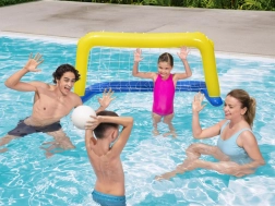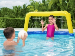 Das aufblasbare Tor BESTWAY bringt sportlichen Spaß in jeden Pool. Die leichte und sichere Ausführung aus hochwertigem Vinyl sorgt für lange Lebensdauer, während das Nylonnetz jeden Treffer zuverlässig auffängt. Dank der Sicherheitsventile ist das Tor schnell spielbereit und ebenso schnell wieder verstaut.