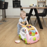 An den Seiten finden Sie Aktivitätswürfel sowie ein Steckspiel und einen Zählrahmen, die die Feinmotorik und das logische Denken fördern. Der interaktive Schlüssel mit Tasten aktiviert Licht- und Soundeffekte, die zum Entdecken anregen. Das niedliche Autodesign werden Kinder schnell lieben.