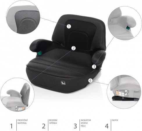 Die Sitzerhöhung iBooster wurde in Europa getestet und entspricht der neuesten Sicherheitsnorm i-Size. Sie kann im Auto mit Isofix und dem Fahrzeugsicherheitsgurt oder ausschließlich mit den Fahrzeugsicherheitsgurten installiert werden. Indikatoren zeigen den Eltern, wie der Gurt korrekt geführt werden muss, damit das Kind optimal geschützt ist.