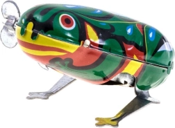 Dieser niedliche Spielzeugfrosch besteht aus Metall in einem schönen Grünton und wird durch einen Federmechanismus angetrieben, der mit einem Schlüssel aufgezogen wird. Der Frosch zaubert allen Generationen ein Lächeln ins Gesicht. Dank seiner kleinen Größe passt er leicht in eine Kinderhand und ist perfekt für lustige Momente, wenn er beispielsweise in einer Handtasche versteckt ist. Stellen Sie sicher, dass Sie ihn als Glücksbringer dabei haben!