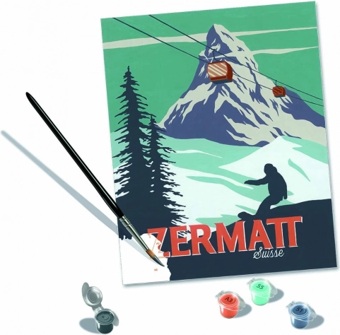 Entdecken Sie den Zauber des Schweizer Ferienorts Zermatt mit dem kreativen Set CreArt. Dieses Malen-nach-Zahlen-Set ist ideal für junge Kreative ab 12 Jahren und bringt ein entspanntes Erlebnis sowie eine schöne Wanddekoration. Dank hochwertiger Materialien und präziser Markierungen auf der Leinwand genießen Sie entspanntes Gestalten, ein präzises Ergebnis und viele Stunden Spaß.