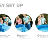 Ein Klassiker unter den oberirdischen Pools. Intex Easy Set zeichnet sich durch seine schnelle und einfache Montage dank des aufblasbaren oberen Rings aus. Einfach aufpumpen und die steigende Wassersäule stellt den Pool selbst auf.