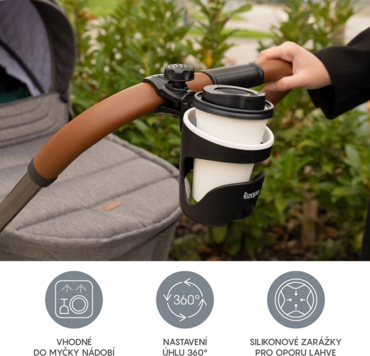 Praktischer Getränkehalter für Kinderwagen und Fahrräder hält Ihr Getränk stets griffbereit und sicher. Dank drehbarem Kopf und fester Klemme bietet er stabile Befestigung, Kompatibilität mit den meisten Bechern und Flaschen sowie werkzeugfreie, einfache Montage. Hergestellt aus robusten und umweltfreundlicheren Materialien mit der Möglichkeit des schnellen Abnehmens und Spülmaschinenreinigens.