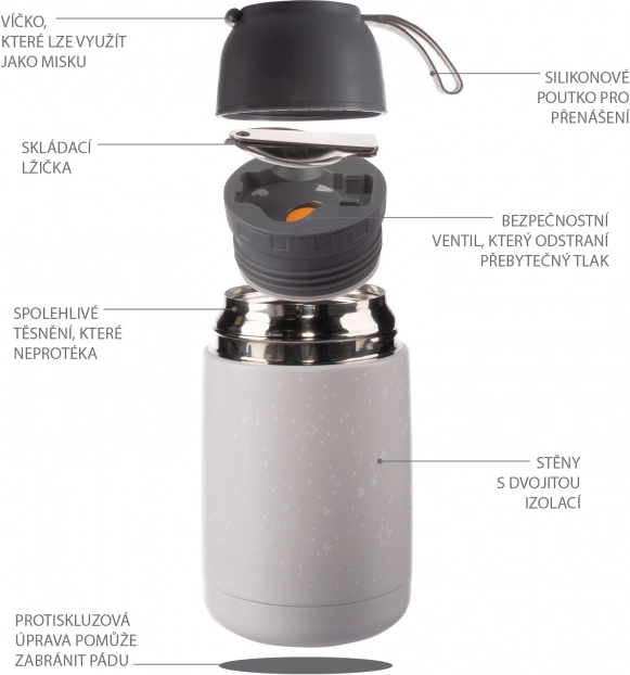 Lebensmittel-Thermobehälter mit Silikonhalter 620 ml, Dino