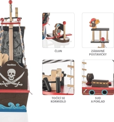 Enthält Holzfiguren und alle notwendigen Teile, um aufregende Piratenspiele und Geschichten zu beginnen.