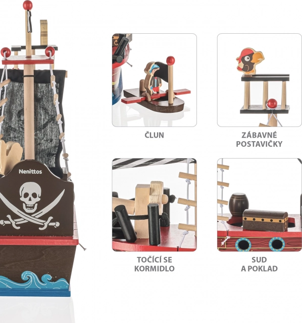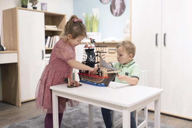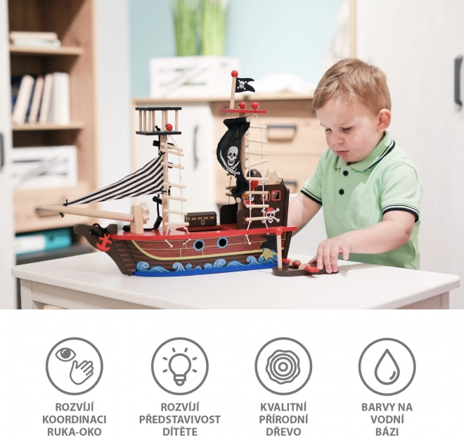 Das Holzpiratenschiff stärkt die Feinmotorik und das Vorstellungsvermögen, bietet stundenlang inspirierendes Spiel für Kinder.