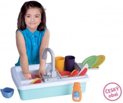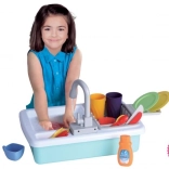 Im Lieferumfang ist eine bunte Ausstattung für eine komplette Spülstation enthalten. Einfach den Tank mit Wasser füllen, Batterien einsetzen und der Spaß kann beginnen.