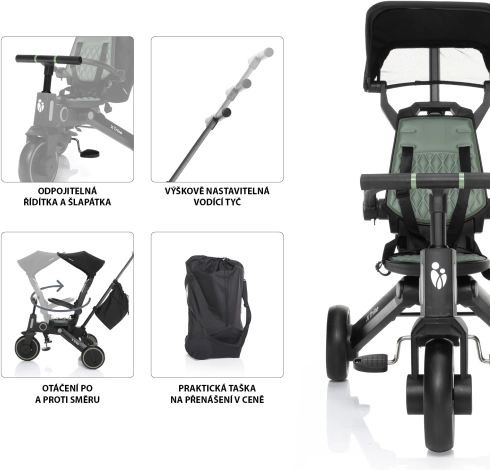 Das Modell X Trike überzeugt mit einer faltbaren Konstruktion auf sehr kompaktes Maß und passt dadurch leicht ins Auto oder in den Schrank. Dank der Möglichkeit, vorwärts oder rückwärts zu fahren, und der höhenverstellbaren Schiebestange meistern Sie jedes Abenteuer mühelos. Eine praktische abnehmbare Tasche sowie eine Tragetasche im Lieferumfang maximieren den Nutzwert.