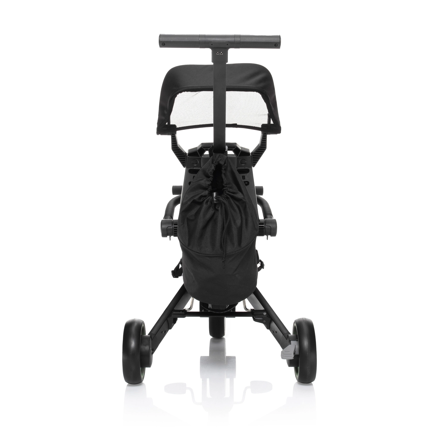 Das Dreirad lässt sich in Sekunden auf kleine Maße zusammenklappen. Eine Tragetasche ist im Lieferumfang enthalten – ideal für unterwegs.