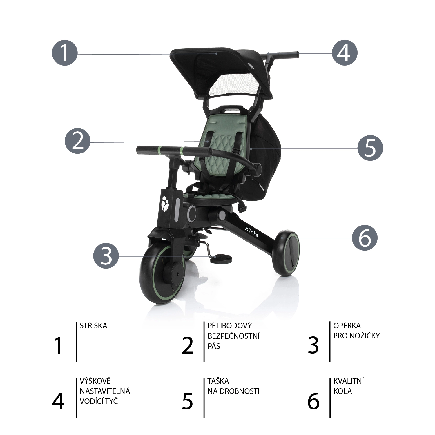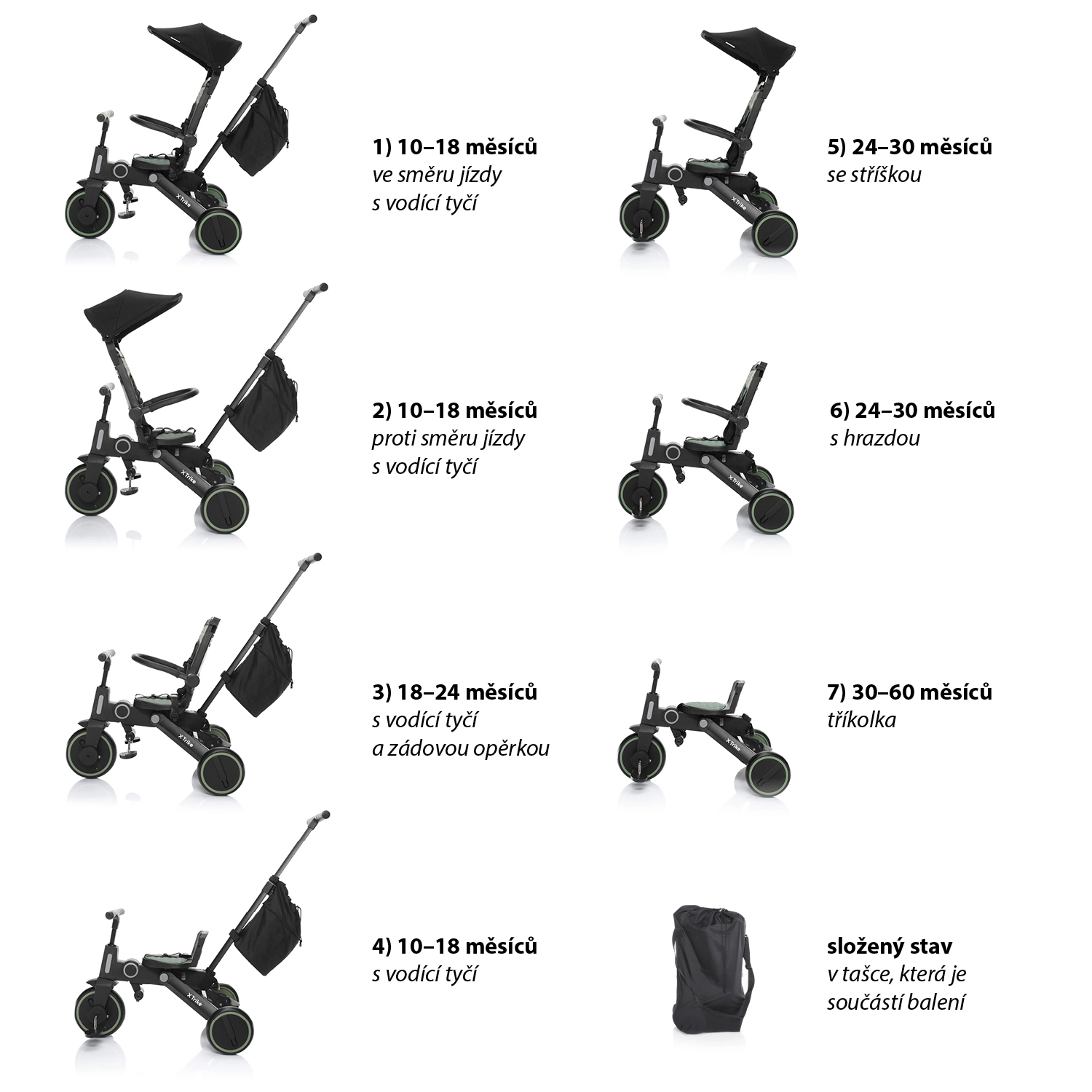 Kinder-Dreirad 7-in-1 X Trike – District Green