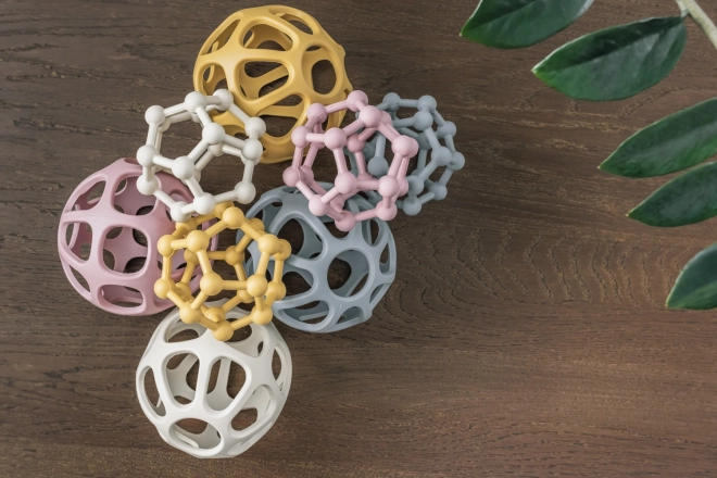 TIPP: Der Silikon-Beißring Atom ist ein perfektes Geschenk beim Besuch eines Neugeborenen.