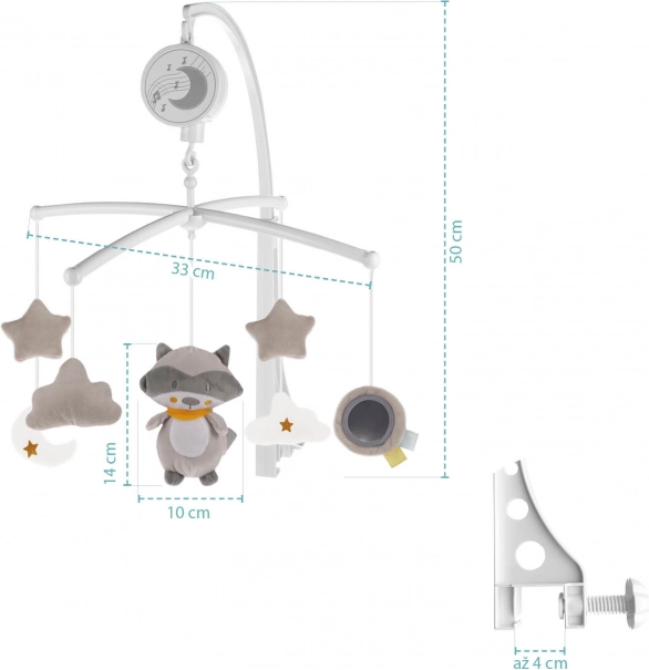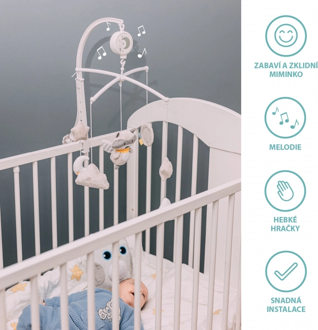Die bewegten Plüschfiguren in sanften Farben mit natürlichen Motiven, dominiert von einem niedlichen Tierchen, werden von mehreren angenehm süßen Melodien begleitet. All dies unterstützt beim Baby auditive, motorische und visuelle Wahrnehmungen. Im Bettchen entsteht so eine angenehme Atmosphäre, die das Baby sanft beruhigt und liebevoll ins Reich der Träume führt.