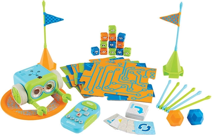 Mit dem Botley Robot Programmier-Set von Learning Resources entdecken junge Forscher die Welt des Programmierens. Der Botley-Roboter führt Schrittfolgen aus, umgeht Hindernisse, bewegt sich auf Strecken und kann Gegenstände bringen. Der Roboter ist mit einem Sensor an der Unterseite ausgestattet und folgt schwarzen Linien, die das Kind mit im Set enthaltenen Karten selbst erstellen kann. Das Set enthält bis zu 77 Teile und eignet sich für Kinder ab 5 Jahren.