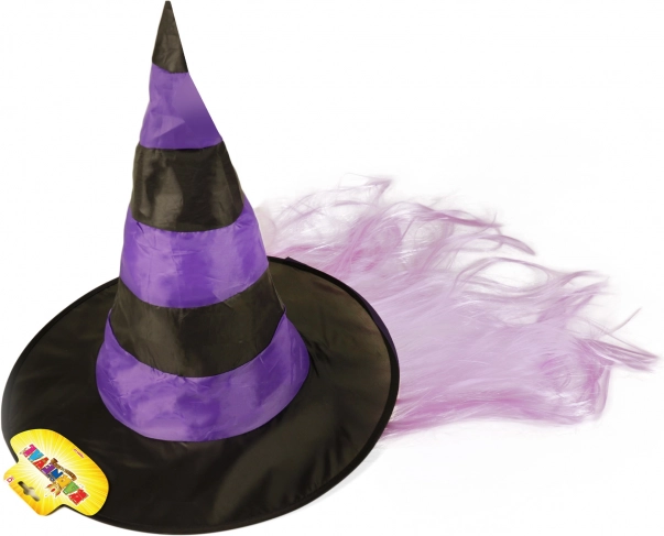 Der Hut besticht durch sein ikonisches Hexenaussehen, das einen breiten Rand und ein gestreiftes Muster beinhaltet.