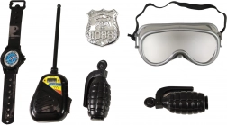 Funkgerät, Uhr, Granate, Abzeichen und Brille – alles, was ein kleiner Polizist zur Abstimmung mit „seinem Team“ und für authentische Abenteuer braucht.