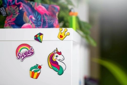• Aufkleber lassen sich auf verschiedene Oberflächen kleben.