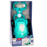 Grüner Rasenmäher mit Seifenblasenfunktion und Spezialflüssigkeit – perfekt für spannende Outdoor-Abenteuer. Neben dem ästhetischen Effekt ermöglicht der Mäher dem Kind, die Arbeit auf einem echten Rasen nachzuahmen, was ein aufrichtiges Lächeln hervorruft.