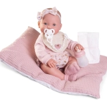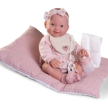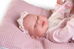 Entdecken Sie den Zauber einer handgefertigten spanischen Puppe, die lebensechte Details bietet, einschließlich niedlicher Falten und weiterer babyhafter Details. Die Puppe ist aus weichem Vinyl gefertigt, was sie besonders angenehm zum Anfassen macht. Jede Puppe ist in organische Baumwolle gekleidet, die umweltfreundlich und ohne chemische Behandlung ist, was das Engagement der Marke Antonio Juan für nachhaltigen Umweltschutz unterstreicht.