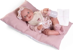 Das Set enthält eine mit Wasser nachfüllbare Flasche und zwei Einwegwindeln. Das gesamte Set ist sorgfältig in einer Geschenkbox verpackt, was es zu einem perfekten Geschenk für jeden Anlass macht. Die 42 cm große Puppe ist ideal für Kinder ab 3 Jahren und fördert kreatives Spielen und Fürsorge.