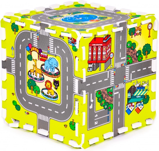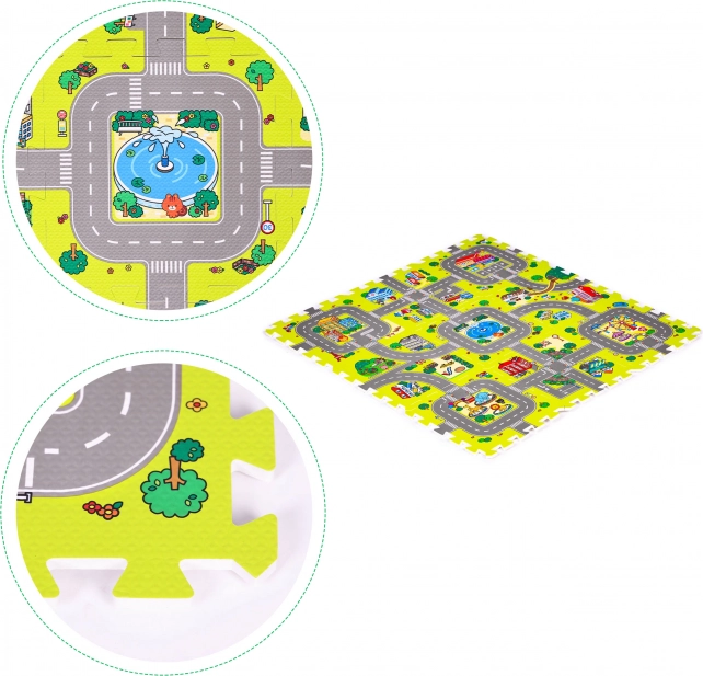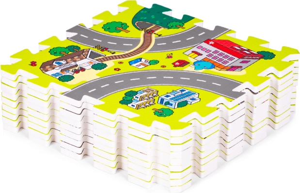 Diese Schaumstoff-Spielmatte mit farbigem Motiv aus Stadt, Straßen und Gebäuden schafft einen inspirierenden Raum für Fantasie, Lernen und motorische Entwicklung. Sie bietet Kindern einen bequemen, weichen Platz zum Spielen, Krabbeln und für die ersten Schritte, schützt zugleich vor Kälte vom Boden und dämpft Stöße bei Stürzen.