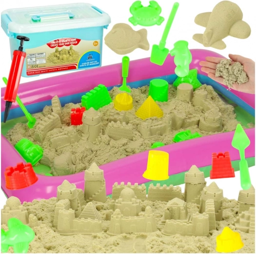 Das Set enthält 2 kg weichen Kinetsand, der sich angenehm anfühlt und leicht formen lässt. Der Sand besteht zu 98% aus natürlichem Sand und zu 2% aus einem speziellen Bindemittel, was ihn zu einem sicheren, nicht-toxischen Produkt macht.
