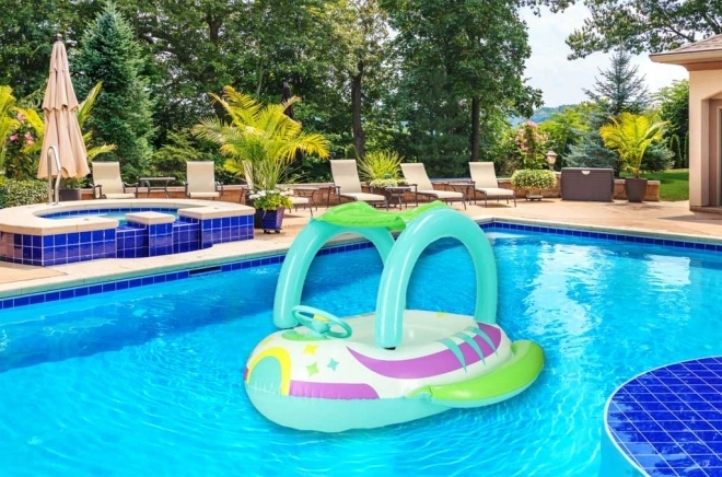 Das aufblasbare BESTWAY-Fahrzeug im verspielten „Space“-Design verwandelt jedes Badeerlebnis in ein Abenteuer. Das Dach bietet wirksamen Sonnenschutz, und der weiche Boden mit Sitz sorgt für maximalen Komfort beim Spielen und Ausruhen. Das Lenkrad regt die Fantasie an und fördert die Motorik.