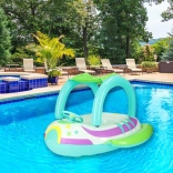 Das praktische Dach schützt vor der Sonne und ermöglicht längeres, sichereres Spielen im Wasser ohne Überhitzung.