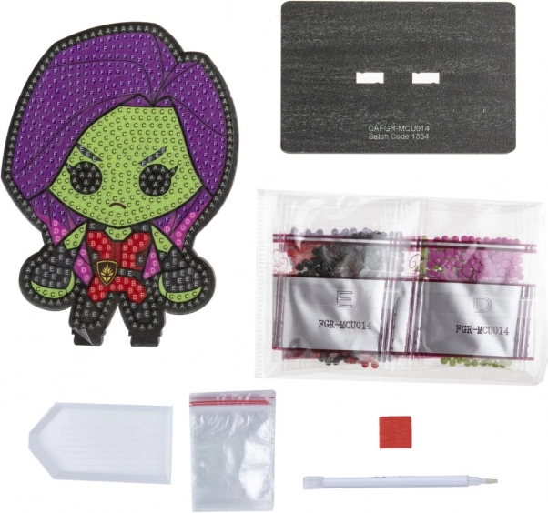 Das Crystal Art Set – Gamora enthält alles, was Sie benötigen, um ein einzigartiges Bild zu gestalten. In der Packung finden Sie ein vorgedrucktes Design auf Leinwand, farbige Kristalle und Werkzeuge für ihre Anwendung. Der ganze Prozess ist einfach und intuitiv, was ein angenehmes Schaffens-Erlebnis garantiert.