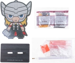 Im Set ist alles enthalten: Applikationsstift, Wachs, Schale, Set farbiger Steinchen, Figurenbasis und Standfuß. Die fertige Figur eignet sich bestens als Deko für Tisch oder Regal, als Geschenk für Avengers-Fans oder als erster Schritt in die Welt des Diamond Paintings.