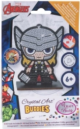 Entdecken Sie die Magie der Diamantmalerei im kompakten und unterhaltsamen Format der Crystal Art Buddies. Dank der vorgedruckten Figuren-Schablone und selbstklebender Punkte übertragen Sie die farbigen Steinchen ganz einfach auf die markierten Bereiche und erschaffen Schritt für Schritt eine glänzende Thor-Figur auf einem Holzständer. Das Basteln ist intuitiv, beruhigend und eignet sich hervorragend für gemeinsame Momente mit der Familie.