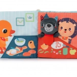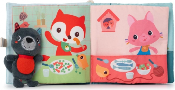 Klare Farben, lustige Tierillustrationen und taktile Details unterstützen die sensorische Entwicklung sowie die Hand-Auge-Koordination. Ein praktisches Fotofenster ermöglicht die Personalisierung, sodass das Kind Teil der Geschichte wird. Das Material ist angenehm anzufassen, sicher und leicht zu pflegen.