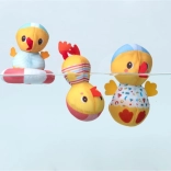 Eine der Küken taucht gerne den Kopf unter Wasser, während die andere lernt, mit einem Ring zu balancieren. Gemeinsam schaffen sie ein lustiges Erlebnis in jeder Badewanne oder jedem Pool.